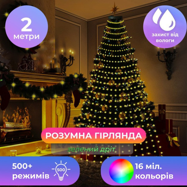 Світлодіодна гірлянда 10LINE 2M, 200 ламп, керування через APP, USB, IP64, мультиколор
