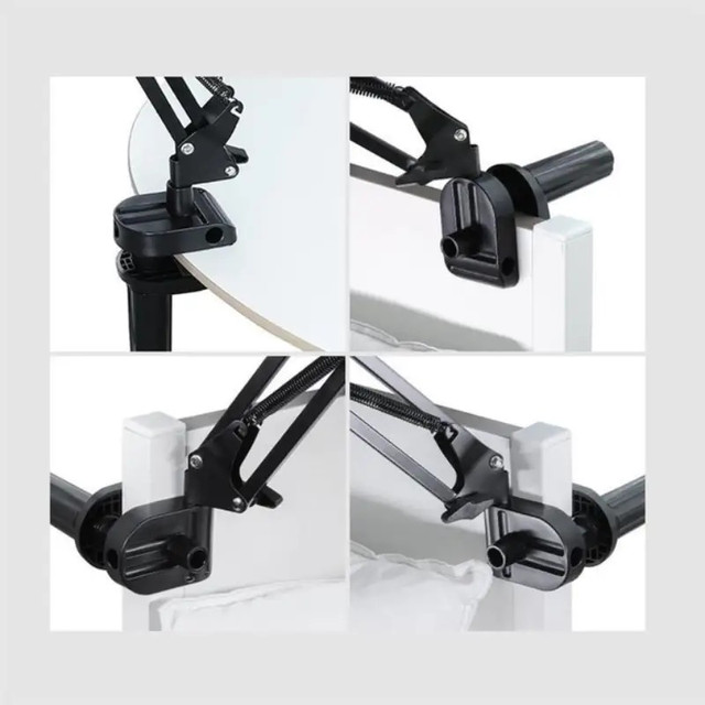 Широке застосування: підставка для телефона та планшета стане вашим найкращим другом під час перерви. Він широко використовується в багатьох місцях, його базовий затискач сумісний із будь-яким верстатом або платформою різної товщини. Він ідеально підходить для спальні, дивана, офісу, кухні, тренажерного залу, ванної кімнати та багато чого іншого. Це дає змогу вам відпустити руки, що є дуже практичним інертним кріпленням.