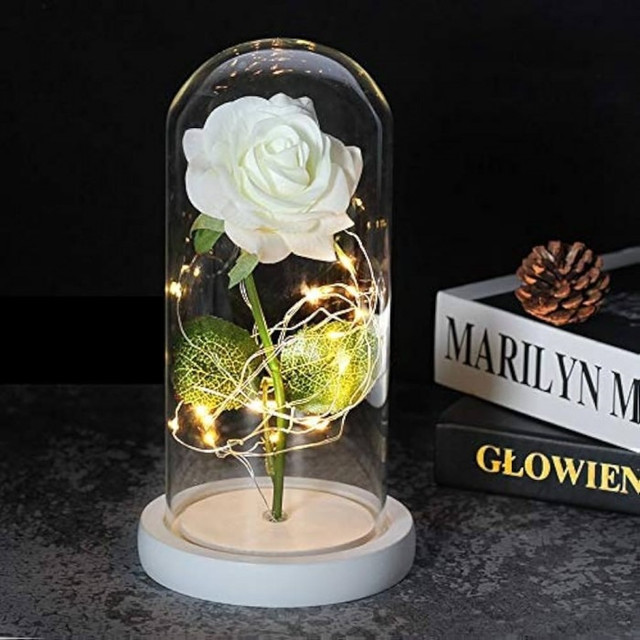 Освітіть свою кімнату за допомогою цього гарного нічного світильника як троянди, який ідеально підходить для додавання романтики до вашої спальні або як дитячий нічник. Цей світлодіодний LED вічна троянда в скляній колбі не тільки унікальний елемент декору, але й прекрасний подарунок. Нічник на батарейках у формі квітки випромінює м'яке світло. Нічник троянда стане чудовим доповненням будь-якого дому.