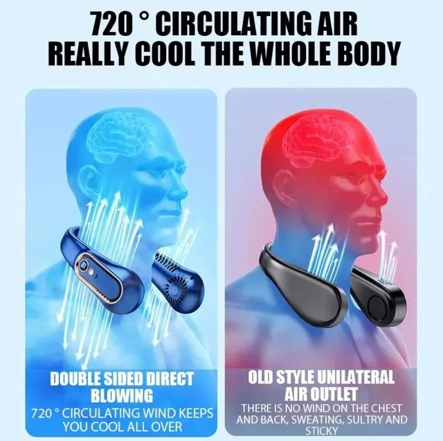 Вентилятор на шию — це новий безлопатевий портативний вентилятор, призначений для носіння на шиї, він стане справжньою знахідкою в душному офісі, метро, вулиці. Повітряний потік, створюваний пристроєм, дасть змогу із легкістю охолодити обличчя й потилицю. Ви можете використовувати вентилятор незалежно від того, де ви перебуваєте, у парку, подорожуючи просто неба, перебуваючи на навчанні в школі. Тиха робота портативного вентилятора не подразнюватиме, і відвертатиме увагу навіть під час роботи.
