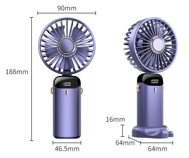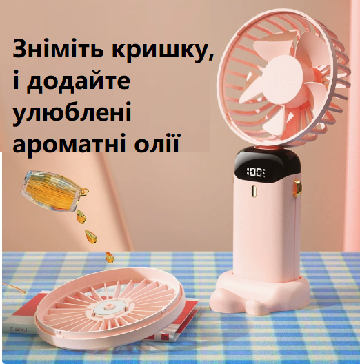 Вентилятор портативний складаний з LED-дисплеєм і тримачем для телефона акумуляторний