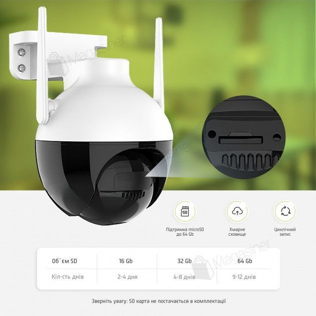 Хмарне та локальне зберігання: запис на карту пам'яті до 64 Гб або в хмару.