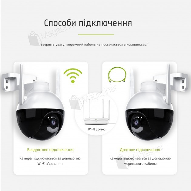 Поворотна конструкція: кут огляду 270° по горизонталі та 100° по вертикалі дає змогу контролювати всю зону.