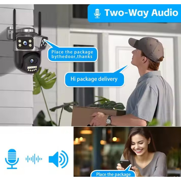 Камера підтримує під'єднання через Wi-Fi 2.4 ГГц і 4G, що робить її зручною для використання навіть у місцях без дротового інтернету. Вбудовані мікрофон і динамік забезпечують двобічний аудіозв'язок, даючи змогу чути та говорити в режимі реального часу.