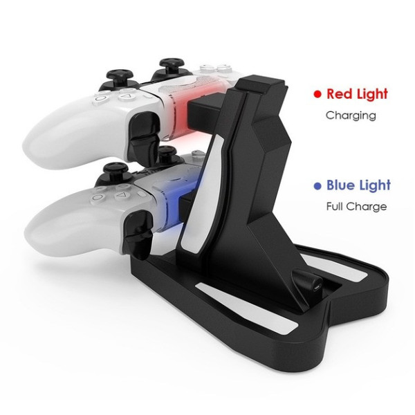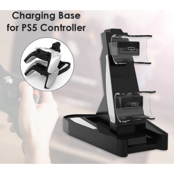 Ця зарядна станція — практичний аксесуар для власників 5, який забезпечує лад і зручність під час зберігання та заряджання геймпадів.