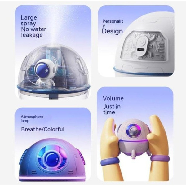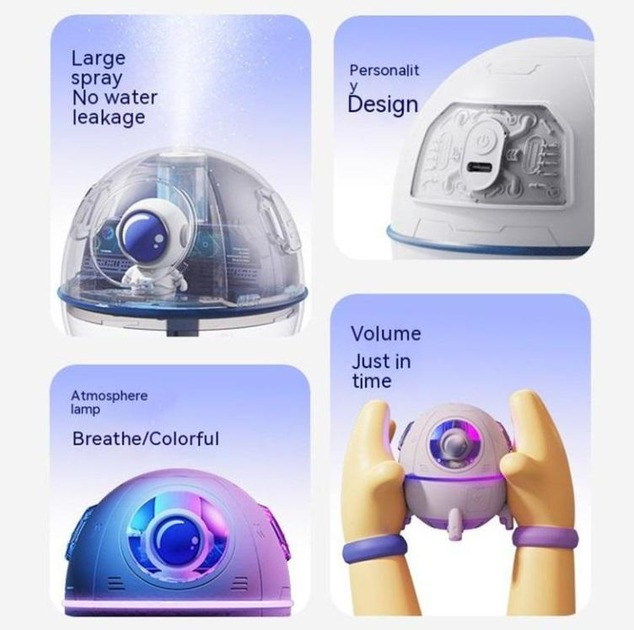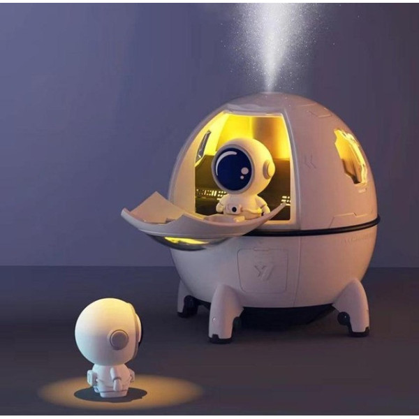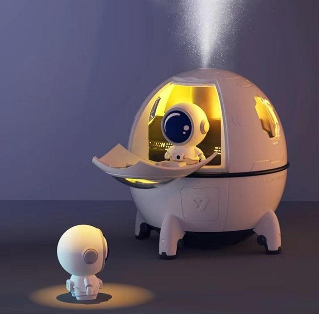 Зволожувач повітря з нічником у формі космонавта — це не тільки практичний пристрій для підтримки комфортного мікроклімату, але й елемент інтер'єру. Його незвичайний дизайн у формі космічного корабля відразу привертає увагу та чудово підходить для спальні, дитячої кімнати або офісу.
